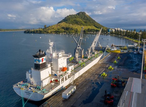 Laut Alastair Hulbert, Zespris Chief Global Supply Officer, ist die MV Kakariki das erste von 57 geplanten Charter-Kühlschiffen im Rahmen von Zespris Verschiffungsprogramm in dieser Saison, im Vergleich zu 49 Charterschiffen in der letzten Saison.