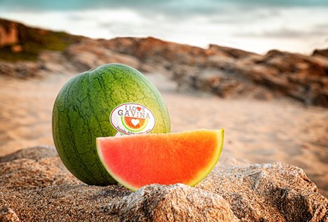 Gavina ist eine Wassermelone, die leicht zu transportieren, lange haltbar und ideal als Snack geeignet ist. Ihr Aussehen ist gekennzeichnet durch ihre hellgrüne Farbe, mit schmalen dunkleren Streifen. Die Haut ist dünn und macht etwa 15% des Gewichts aus. Bei anderen Wassermelonen sind es 30%.