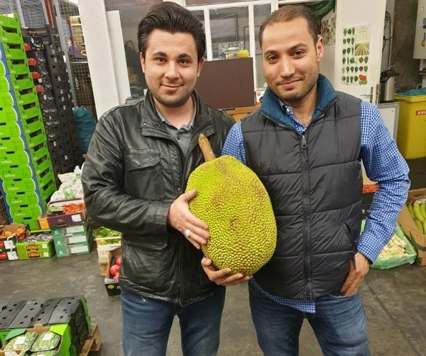 Serdat Bayburt und Sayed Nageb mit einer Jackfruit