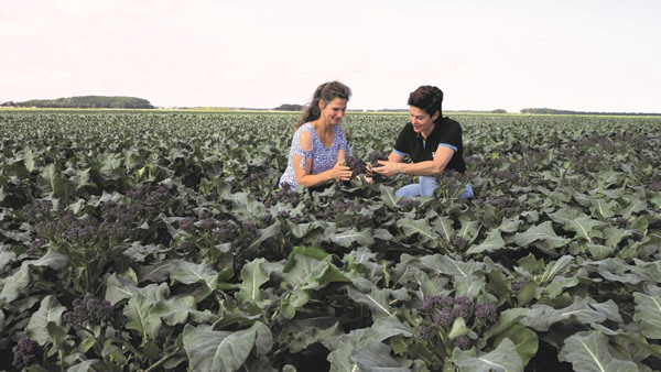 Wendy Hoogendoorn von Dutch Valley Vegetables und Daniëlle Bruin Bejo mit lila sprießendem Brokkoli von Redi