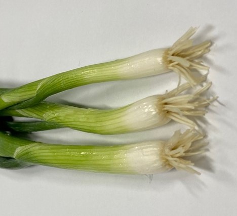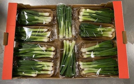 "Die Frühlingszwiebeln werden sortiert, gewaschen, teilweise entblättert und zu Bündeln von 125 Gramm geschnürt, die für ausländische Verarbeiter und den Frischmarkt bestimmt sind. Sie ist auch in Pappschalen und in biologisch abbaubarer Folie per 125 Gramm verpackt, aber auch lose in Kartons erhältlich. Wir sind für alle Anfragen offen, abhängig von der Planung."