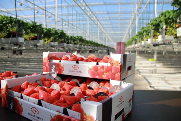 Hoogstraten setzt auf Nachhaltigkeit, indem es für seine Erdbeeren recycelte Kartonschalen verwendet. Diese sind das ganze Jahr über erhältlich sind und werden direkt nach Großbritannien geliefert.