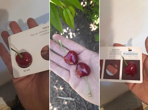 "Santiago baut die Sorte Santina nur wegen der schönen dunklen Farbe, dem harten Fruchtfleisch und den großen Früchten an, für die diese Kirschensorte bekannt ist. Alle Kirschen werden unter GlobalGAP-Bedingungen angebaut. Die Kirschen werden von diesem Betrieb zu der Packstation gebracht, die die Kirschen woanders verkauft. Wir haben alles selbst in der Hand sie genommen und haben damit eine Lieferkettenverkürzung bei der Versorgung mit chilenischen Kirschen erreicht", so der Importeur weiter.