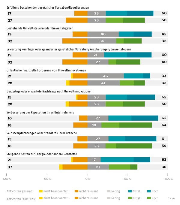 Grafik 1: Welche Bedeutung hatten die folgenden Faktoren für die Einführung von Umweltinnovationen durch Ihr Unternehmen in den Jahren 2018 bis 2020? DIL e. V./ RF