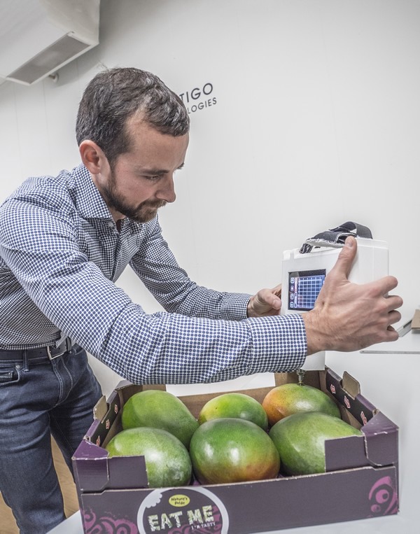 Der Sensor nutzt elektromagnetische Mikrowellen, um tief in das Obst 'hineinzuschauen'. "Auch hier ist Fresco einzigartig. Er ist der einzige Sensor, der diese Technik nutzt, um so tief in die Frucht einzudringen. So erhält er die besten Ergebnisse. Fresco kann Qualitätsparameter wie Reifegrad, Süße, innere Fehler und Haltbarkeit bestimmen. Und das alles in weniger als einer Sekunde."