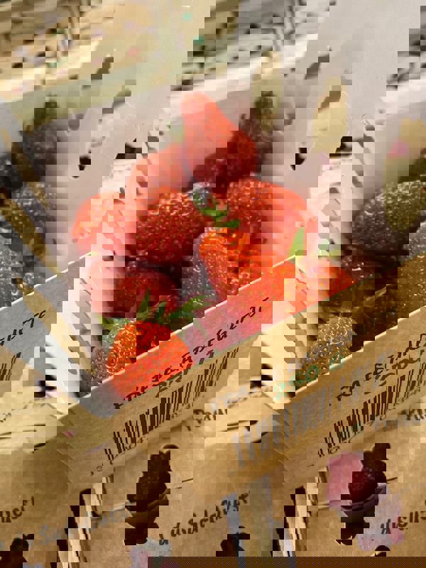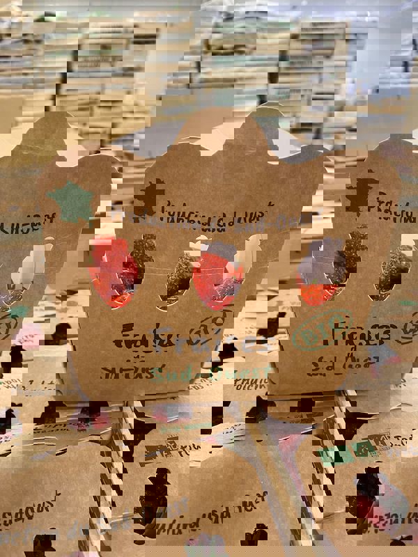 In diesem Jahr verkauft Biogaronne seine Erdbeeren zum ersten Mal in neutralen und geschlossenen Schalen aus Karton. "Früher haben wir unsere Erdbeeren in Schalen aus Pappe mit Öffnungen verkauft. Aber seit der Corona-Krise und wegen der Diebstähle in den Geschäften verkaufen wir unsere Erdbeeren in geschlossenen Schalen. Um eine maximale Sichtbarkeit zu gewährleisten, haben unsere Schalen an den Seiten kleine Öffnungen in Form von Erdbeeren. Auf Wunsch unserer Kunden haben wir uns für ein schlichtes Design entschieden, das die Herkunft aus dem Südwesten repräsentiert."