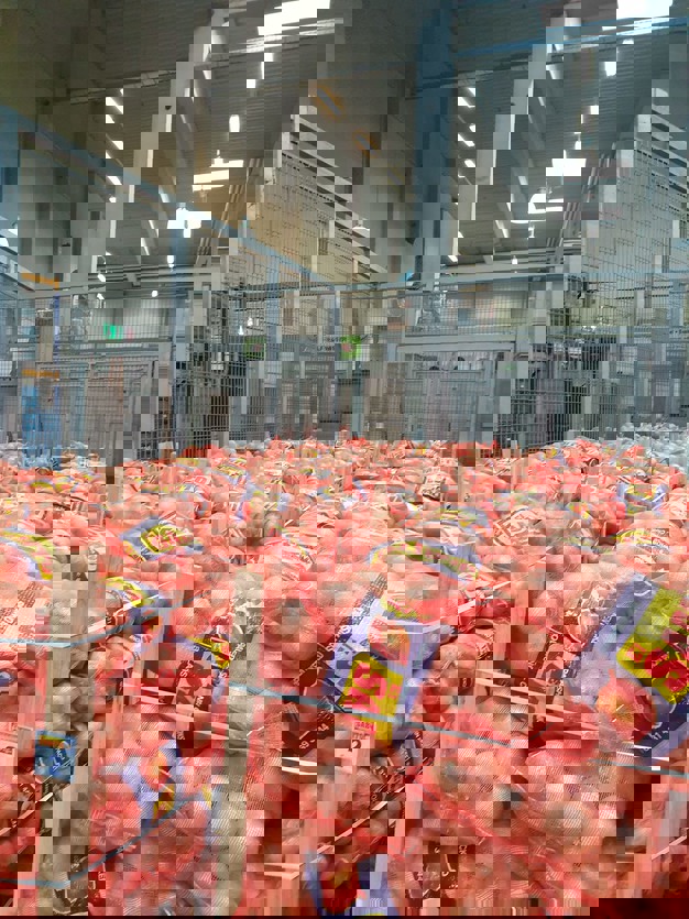 "In dieser Woche konnte ich zehn Paletten an Zwiebeln anbieten. Zum Ende der Woche wird aber erst einmal nicht viel nachkommen. Mit Hollandzwiebeln versuchen wir, das Angebot auszugleichen, von denen wir etwa 5-6 Paletten anbieten können. Eine Palette Metzgerzwiebeln enthält 40x25kg-Säcke. Bei der holländischen Ware sind wir bei 50 bis 55x25kg-Säcken pro Palette. Die Qualität der Hollandware ist der Zeit entsprechend angemessen und auf jeden Fall besser als die Kühlhausware", sagt Stark abschließend.