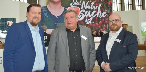 Christiaan Koellreuter, Wilhelm Krogmann und Klaus Schneider der Nordgemüse Krogmann GmbH & Co KG am Gemeinschaftsstand vom Gemüsering auf der diesjährigen Fruit Logistica.