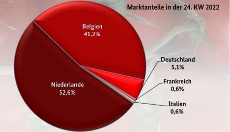 Niederländische und belgische Tomaten bildeten die Basis des Angebotes. Die Zufuhren hatten sich summa summarum begrenzt. Auch die Präsenz der einheimischen und italienischen Offerten schmolz ein wenig. Zufuhren aus Polen, Spanien und Frankreich hatten laut BLE höchstens ergänzenden Charakter. Der Bedarf konnte in der Regel ohne größere Anstrengungen gedeckt werden. Einstandsbedingt oder infolge verbesserter Unterbringungsmöglichkeiten tendierten die Notierungen verschiedentlich aufwärts.