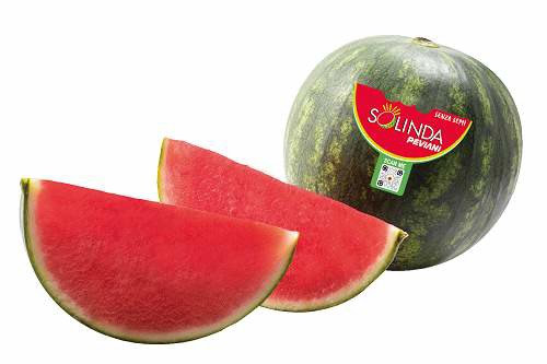 Klein, sehr süß, knackig, kernlos, mit viel Fruchtfleisch und einer dünnen Schale - das sind seit jeher die Merkmale der Solinda, einer Wassermelone, die ausschließlich von Peviani Spa in der Nähe des Ionischen Meeres in den italienischen Regionen Apulien und Basilikata angebaut wird. Die Wassermelone ist seit mehr als 15 Jahren in den Regalen der italienischen Einzelhändler zu finden.
