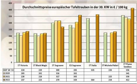 Italienische Trauben dominierten augenscheinlich das Geschehen: Victoria und Black Magic stachen dabei besonders hervor. Italia hatten merklich an Bedeutung gewonnen und tauchte inzwischen in