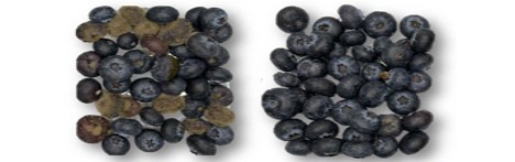 Diese Blaubeeren wurden zur gleichen Zeit gekauft, aber nur die rechts wurden von Save Foods behandelt