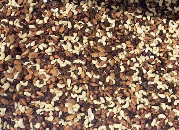 Der Mixer hat einen Tank, in dem die Mischung mit Schaufeln in Bewegung gesetzt wird. Dabei werden die Nüsse nicht beschädigt. Der Mixer wird über einen Computer gesteuert. Auf einem Bildschirm kann das Personal die Rezepturen für die Mischungen, die technischen Daten der Maschine, die Mischzeit, Mischgeschwindigkeit und die Stärke der Vibration einstellen. Wenn die Mischung fertig ist, wird der Tank geleert und die Mischung landet auf einem Förderband. Von hier aus wird sie automatisch in große Säcke verpackt.