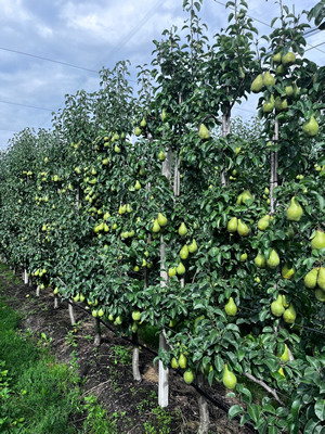 "Der Fruchtansatz der Xenia-Birnen ist gut verlaufen. Wir erwarten eine 95%ige Ernte mit einem 90%igen Anteil der 70+ Qualität. Das scheint aus verkaufstechnischer Sicht günstig zu sein, denn durch das warme Wetter in Europa wird der Druck auf die kleineren Größen steigen", erwartet Raymond. Ihm zufolge ist die Qualität der Haut in diesem Jahr auch gut. "Letztes Jahr hatten wir aufgrund des kalten Frühjahrs mehr braune Birnen. Dieses Jahr haben wir dieses Problem nicht. Mit einem Brix von 12/13 liegt auch der Zuckergehalt auf einem guten Niveau. Die Birnen hatten keine Wasserknappheit und sind dank der Düngung gut gewachsen."