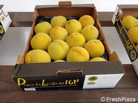Die vom Consorzio di Tutela della Pesca di Leonforte IGP organisierte zweitägige "Pressetour" hat es ermöglicht, diesen hervorragenden Pfirsich verschiedenen Erzeugern vorzustellen. Der Pfirsich ist eigentlich ein Percoca-Pfirsich, d.h. mit einem festeren und knackigeren Fruchtfleisch.