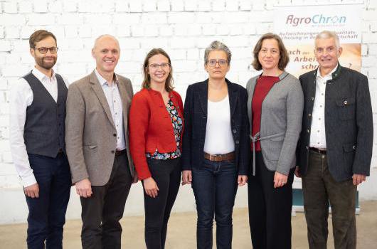 Brancheninsights: (v. r. n. l.) Stephan Imbery, Geschäftsführer von AgroChron, mit den ReferentInnen Judith Hobmeier, Katharina Brand und Lisa Ketzer (suscoa GmbH), Franz Rauch (Delimax) und Josef Rohregger (Zukunft.farm). Foto: AgroChron/Daniel Hinterramskogler