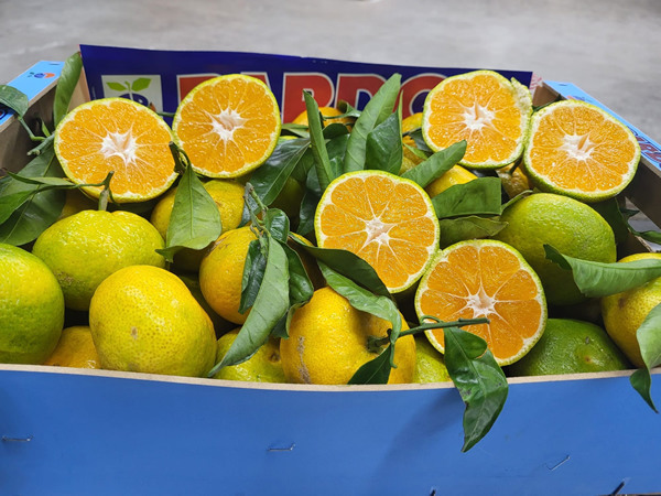 Das Angebot besteht jetzt größtenteils aus Satsuma Blattmandarinen (Iwasaki). "Diese Mandarinen sind traditionell noch etwas zurückhaltend in der Farbe, schmecken aber sehr gut. Unsere hauptsächlich ethnischen Käufer achten nicht unbedingt auf die Farbe. An Supermarktkunden kann man diese Mandarinen nicht so gut verkaufen", erklärt der Importeur.