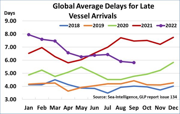 Sea-Intelligence hat die Ausgabe 134 des Global Liner Performance (GLP)-Berichts mit Zahlen zur Zuverlässigkeit der Fahrpläne bis einschließlich September 2022 veröffentlicht. Da der Bericht selbst recht umfangreich ist und die Zuverlässigkeit der Fahrpläne für 34 verschiedene Fahrtgebiete und mehr als 60 Reedereien abdeckt, wird in dieser Pressemitteilung nur auf die globalen Highlights des vollständigen Berichts eingegangen.