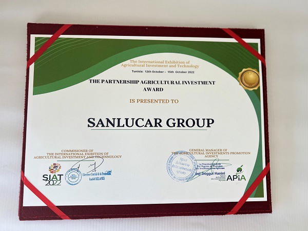 Das multinationale Unternehmen SanLucar, welches sich auf die Produktion und den Vertrieb von hochwertigem Obst und Gemüse spezialisiert hat, ist mit dem „Partnership Agricultural Investment Award“ in Tunesien ausgezeichnet worden.