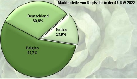 Bei Kopfsalaten überwogen belgische Artikel vor inländischen. In München trafen daneben erste italienische Anlieferungen ein, die damit die Saison eröffneten. Sie fanden relativ schnell Abnehmer, da sie günstiger als die Konkurrenz waren. Überzeugte die Qualität, konnten die bisherigen Notierungen summa summarum bestätigt werden. Die belgischen Produkte vergünstigten sich in Frankfurt, weshalb sie mehr Beachtung generierten. Dort gab es roten deutschen Kopfsalat, der zu 7,- bis 8,- € je 9er-Karton flott verkauft werden konnte.