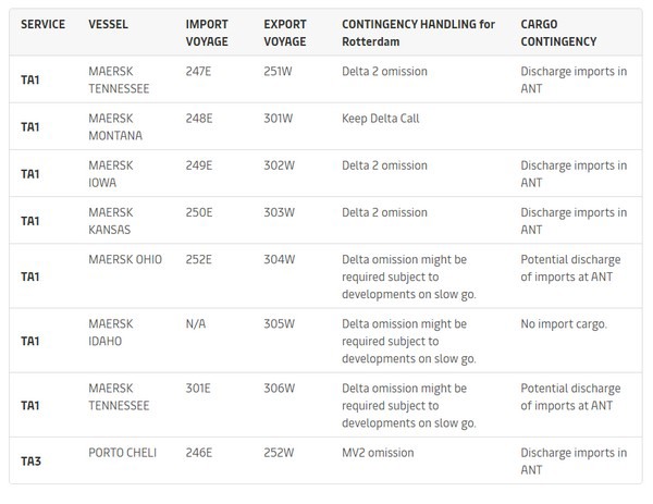 Um den Betrieb so reibungslos wie möglich zu halten, hat Maersk die folgenden Änderungen an den anstehenden Fahrplänen vorgenommen: