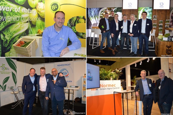 Im Uhrzeigersinn: Joost Nijssen von Bayer, das Team von Bejo, der Stand der Firma Normec und das Team des in Nordhorn beheimateten Verpackungsunternehmens Bio4Pack