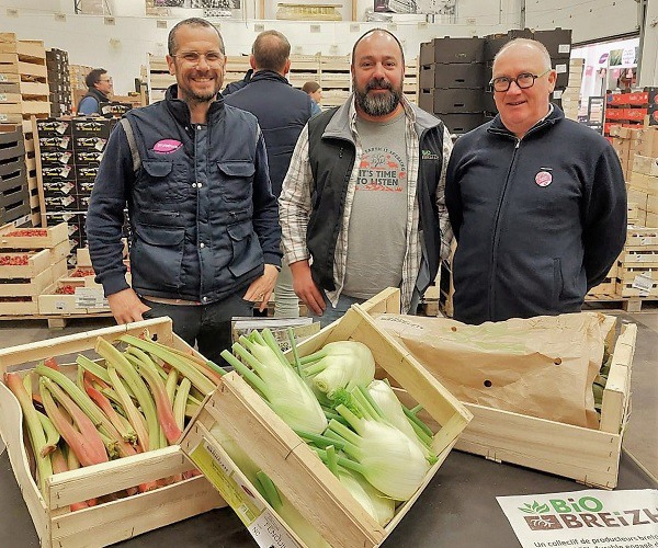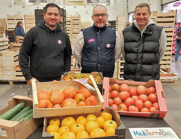 Pierrick Leroux (Mitte), Generaldirektor von ProNatura und Vorsitzender und CEO von Organic Alliance, umgeben von zwei MédiTerraBio-Erzeugern.