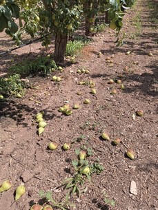 "Die größten Schäden wurden in dem Gebiet von Jumilla bis Yecla gemeldet. Wir haben Informationen erhalten, dass in der Gegend von Miraflores die Bewässerungsgemeinschaft das Ausmaß der Schäden in einigen Parzellen auf bis zu 100 Prozent schätzt und dass in der Cañada del Judío einige Parzellen glücklicherweise größtenteils von den Auswirkungen der Windböen verschont geblieben sind. Bei den Birnen mit der Herkunftsbezeichnung Jumilla schätzen wir, dass durch die Winde am Dienstag zwischen 15 und 20 Prozent der Früchte der Parzellen mit der g.U. zu Boden gefallen sind. Bezogen auf die Menge könnte dies 400.000 bis 500.000 Kilo gefallener Birnen bedeuten."