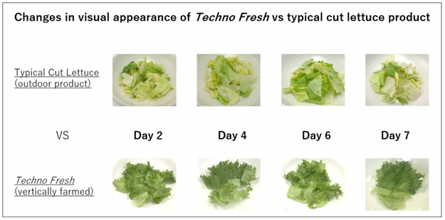 Durch diese Methode konnte Spread die Haltbarkeit des geschnittenen Salats um das bis zu Zweifache verlängern und ist das erste Unternehmen, das eine rekordverdächtige Haltbarkeit von sechs Tagen für ein frisch geschnittenes Salatprodukt in Japan erreicht hat. Darüber hinaus verhindert die Techno Fresh-Methode die Verfärbung von Salat.