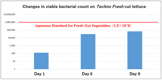 Traditionell erfordern frisch geschnittene Gemüse eine lebensfähige Bakterienzahl von weniger als 1.000.000 pro 1 g des Produkts. Aus diesem Grund ist die Haltbarkeit von frisch geschnittenem Salat in Japan üblicherweise auf drei bis vier Tage festgelegt.