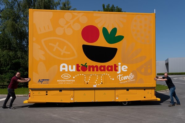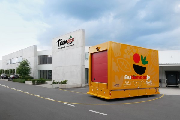 Seit kurzem fährt ein selbstfahrender Logistikroboter, der Automaatje, zwischen dem Sortierzentrum von Tomeco und dem Lager von Coöperatie Hoogstraten. Der Automaatje ist ein von AVT Europe entwickeltes, völlig autonomes Fahrzeug für die 235 Meter lange Strecke zwischen den beiden Standorten. "Für die Mitarbeiter war es gewöhnungsbedürftig, aber inzwischen konnten wir damit einen weiteren schönen Automatisierungsschritt machen", sagt Tom Verdonck von Tomeco, das seine Tomaten exklusiv über Coöperatie Hoogstraten vertreibt.