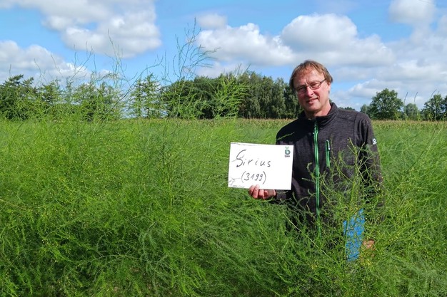 Günter Hugenberg im Versuchsfeld der neuen Sorte Sirius.