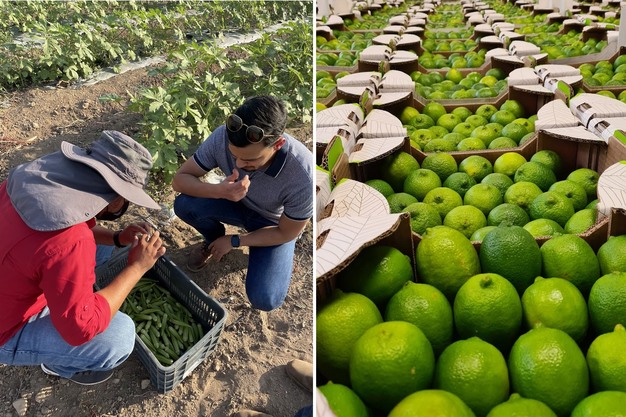Julio Pérez (r) erkundigt sich vor Ort im Ursprung. Rechts: Limetten