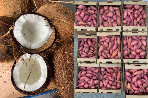 Kokosnüsse sowie Süßkartoffeln zählen zu den Hauptprodukten des Jungen Unternehmens.