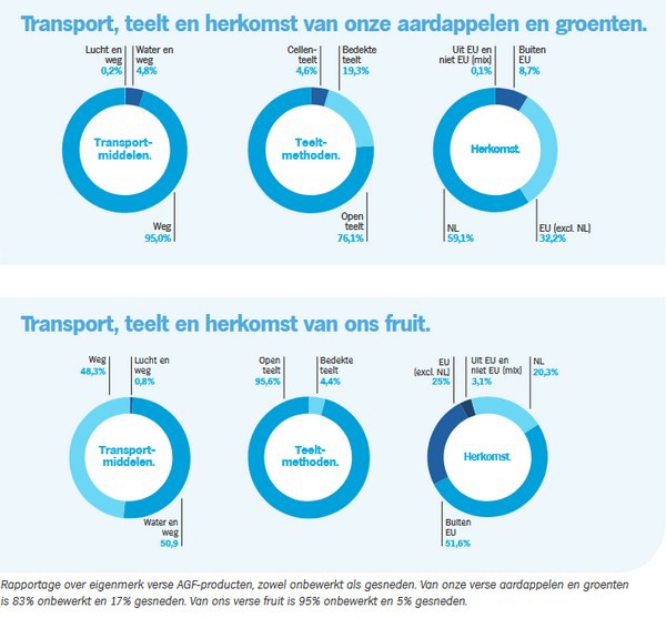 Mehr als 400 Obst- und Gemüseerzeuger haben sich AH in der Initiative Better for Nature & Farmer angeschlossen, mit der die Supermarktkette versucht, die Themen Biodiversität und Klima miteinander zu vertiefen. Seit 2021 bittet AH die Landwirte und Erzeuger aus den Programmen Beter voor Natuur & Boer um Klimadaten. Sie füllen jährlich Informationen über ihre Betriebe aus, anhand derer AH den CO₂-Fußabdruck ihrer Produkte berechnet. Diese Informationen werden von einer unabhängigen Agentur validiert.