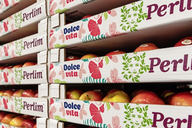 Die neue Apfelsorte von Alliance Perlim-Meylim, Perlim® Dolce Vita Gradisca, ist gerade im dritten Teil der Saison auf den Markt gekommen. Für das französische Familienunternehmen, das seit mehreren Jahren eine Diversifizierungsstrategie verfolgt, ist das ein wohlüberlegtes Wagnis. Der Apfel Perlim Dolce Vita ist in seinem Herkunftsland Italien bereits etabliert, aber der zweifarbige Apfel hat viele Trümpfe, um auch den französischen Markt zu einer Zeit zu erobern, in der die Sommerfrüchte allmählich in die Regale kommen. Die Segmentierung der Äpfel stößt in Frankreich an ihre Grenzen, denn die Sortimente schrumpfen in Verbindung mit der sinkenden Kaufkraft, aber der neue Perlim Dolce Vita hat das Ziel, sich auf dem Markt durchzusetzen.