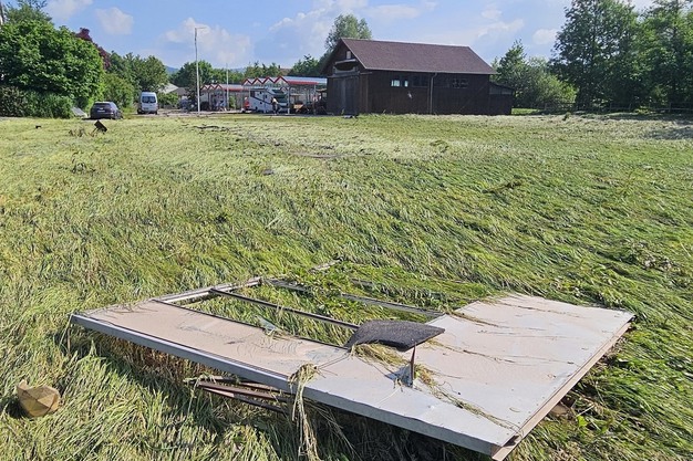 Teile der Seitenwand eines betroffenen Gewächshauses wurden bis auf das Nachbargrundstück gespült.