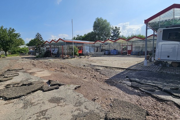Zufahrt und Parkplätze dieses Gewächshauses sind komplett zerstört