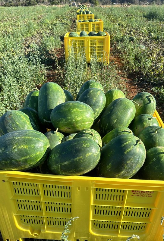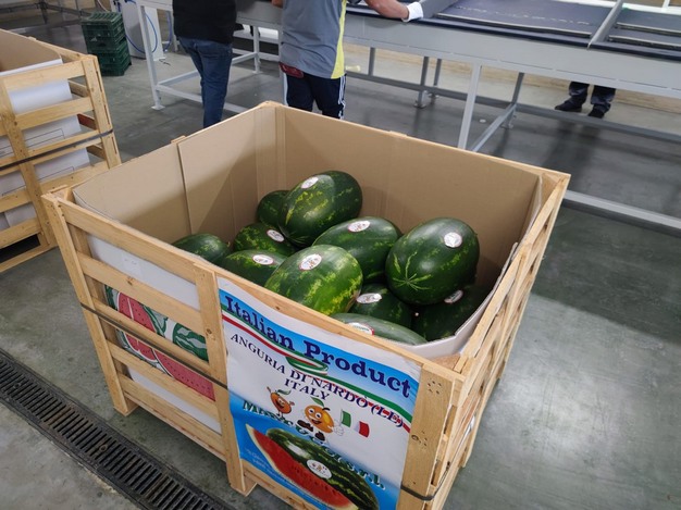 Für Daniele und Nadia Martucci von der Firma Martucci Srl hat die Vermarktung vor Kurzem begonnen, und das ist ermutigend. "Wir haben am vergangenen Freitag, dem 21. Juni, mit den ersten Mustern begonnen, die nach Deutschland, Frankreich und Polen geschickt wurden. Das Produkt wurde gebürstet, poliert, kalibriert und mit einem Markenzeichen versehen. Während in den östlichen Ländern 8 bis 10 kg bevorzugt werden, wenden sich die Marktteilnehmer auf den anderen europäischen Märkten größeren Wassermelonen zu, deren Gewicht zwischen 10 und 12 kg und 15 bis 18 kg liegt. Die Kunden können entscheiden, ob sie das Produkt in Karton- oder Holzkisten erhalten möchten. Es handelt sich um die Sorte Melania, die es uns ermöglicht, bis Ende September auf den Märkten präsent zu sein."
