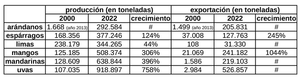 Betrachtet man die Produktions- und Exportzahlen verschiedener peruanischer Obst- und Gemüseprodukte, die auf der Website Faostat, der weltweit größten Datenbank für Ernährungs- und Agrarstatistiken, veröffentlicht werden, so hat sich die Avocado-Produktion zwischen 2000 und 2022 verzehnfacht, von 83.671 Tonnen im Jahr 2000 auf 866.456 Tonnen im Jahr 2022. Im Jahr 2022 wurden 583.214 Tonnen dieser Frucht exportiert, während es im Jahr 2000 noch unbedeutende 2.209 Tonnen waren.