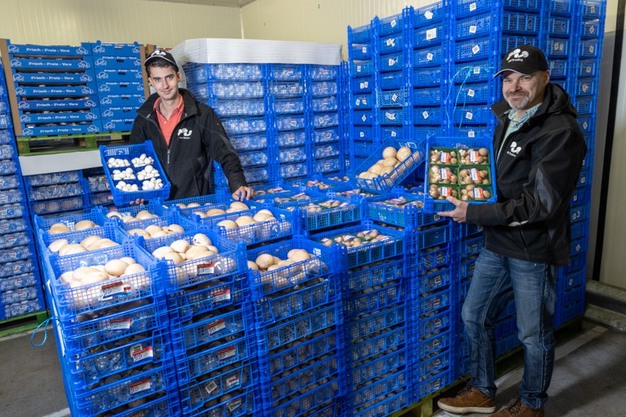 Mit seiner 60-jährigen Geschichte ist Van Namen Champignons ein bekannter Name in der Champignonwelt. Das Unternehmen produziert jede Woche etwa 110 Tonnen weiße Champignons, 40 Tonnen braune Champignons und außerdem etwa zwei Tonnen Austernpilze. "Damit sind wir in den Niederlanden ein wichtiger Akteur. Alle Pilze, mit denen wir handeln, stammen aus unseren eigenen Anbauflächen", sagt Mark. "Wir beliefern einen breiten Kundenstamm von deutschen und niederländischen Großhändlern bis hin zu Kunden, die französische Supermärkte beliefern. Wir exportieren auch noch nach Großbritannien."