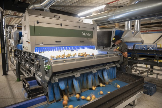 Flikweert Vision bietet auch den Divider an, eine Maschine, die Fremdkörper und stark beschädigte Produkte am Anfang der Produktionslinie aussortiert. Sie verwendet eine über dem Förderband montierte Kamera und ein System, das unerwünschte Objekte auswirft. Das Gerät wird vor dem Walzenlader platziert und hilft bei der ersten Qualitätskontrolle.