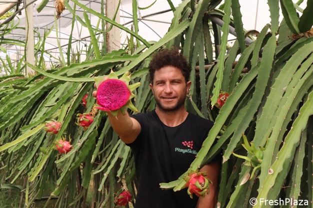 "Ich wurde wie viele andere in eine Familie von Bauern hineingeboren", beginnt Ficarra, "und ich habe den Betrieb übernommen, der von meinem Großvater an meine Mutter vererbt wurde. Bis vor ein paar Jahren bauten wir nur Tomaten, Auberginen, Zucchini, Paprika, Orangen und Zitronen an, aber 2016 veränderte eine Reise nach Mexiko mein Leben. Als ich auf einen Anbau von Pitaya, der sogenannten Drachenfrucht, stieß, war ich sehr beeindruckt von der Schönheit der Blüte, der Frucht und schließlich von der Farbe ihres Fruchtfleisches."