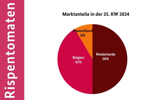 Belgische und niederländische Offerten dominierten augenscheinlich die Szenerie. Bei den Kirschtomaten konnte zusätzlich auf italienische und spanische Artikel zugegriffen werden. Bei den Runden Tomaten komplettierten polnische Partien in München und Berlin das Geschehen. Inländische Produkte gab es in den Bereichen der Kirschtomaten, der Rispenware und den Runden Tomaten. Insgesamt hatte sich die Verfügbarkeit spürbar ausgedehnt, insbesondere die Anlieferungen aus den Niederlanden intensivierten sich merklich. Die Nachfrage konnte damit laut BLE nicht immer Schritt halten, sodass die Händler auch mal zu Vergünstigungen gezwungen waren, wenn sie größere Überhänge vermeiden wollten. Doch auch einstandsbedingte Verteuerungen waren durchaus häufig zu beobachten. Außerdem stiegen die Notierungen auch infolge verbesserter Unterbringungsmöglichkeiten. In Berlin verloren die inländischen Erzeugnisse an Bedeutung.