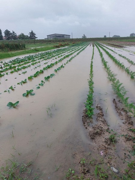 Marco Lisi ist Erzeuger aus Gambettola, einer Gemeinde an der Grenze zu Cesena (FC). Am Mittwoch, dem 18. Mai, machte er diese Fotos und kommentierte: "Einige meiner Anbauflächen sind völlig überschwemmt. Das mit den Salaten sieht aus wie ein Reisfeld, mal sehen, ob wir einen Reissalat machen können", scherzt er wie jeder gute Romagnolo, wenn er mit einer schlechten Situation konfrontiert ist.