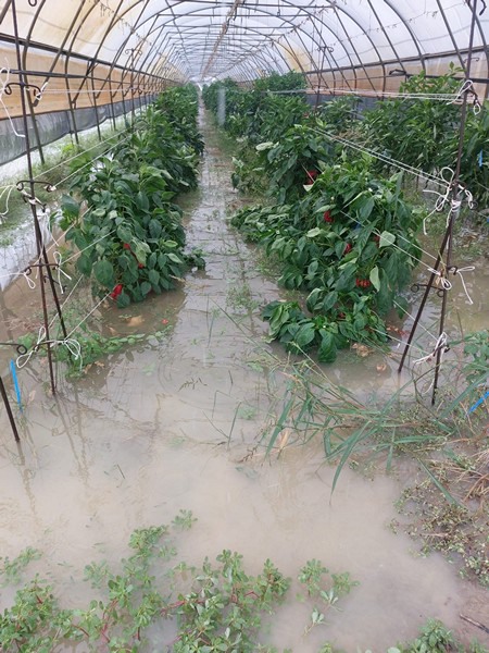 "Das Paprika-Gewächshaus wurde auch überschwemmt. Wir waren zu 50 Prozent betroffen. In einem Gewächshaus führen wir Sortenversuche für eine Saatgutfirma durch. Die Auberginen stehen ebenfalls unter Wasser, ebenso die Gurken", sagt er.