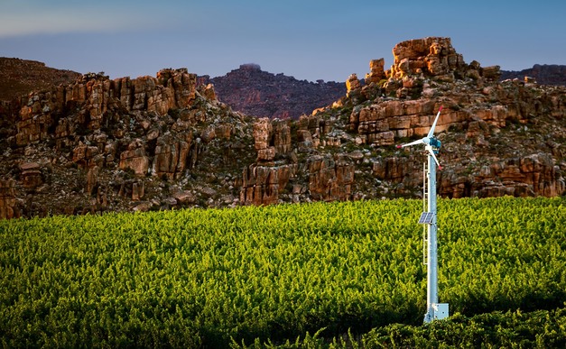 In der Nähe von Augrabies am Nordkap betreibt ein Trauben- und Zitrusanbauunternehmen seine Frostventilatoren mit einer 1.125-kW-Solaranlage und einer Batteriekapazität von 1.062 kW. Er stellt fest, dass weltweit 50 bis 200 Stunden Ventilatorbetrieb die Norm sind, aber im Nordkap, an den Ufern des Oranje-Flusses, wo manchmal ganze Zitrusfruchtplantagen mitten im Winter einfrieren, lassen die Kunden die Ventilatoren bis zu 600 Stunden pro Jahr drehen.