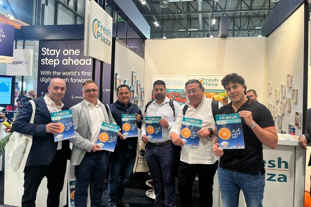 Das Team Sol de Olmos konnte es kaum erwarten, eine gedruckte Ausgabe des Primeur Magazine, Ausgabe Fruit Attraction, zu erhalten.