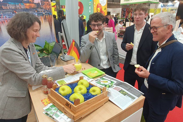 Nicht gedacht, dass ein gelbgrüner Apfel so lecker schmecken kann, war die Reaktion vieler Fachbesucher bei der Verkostung, die Dr. Janne Lempe vom JKI durchführte. Fazit: ein gelungener Auftritt vor internationalem Publikum.