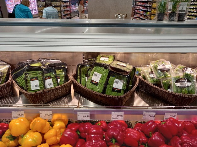 Bohnen, Zuckerschoten und Baby-Zucchini sind Premiumprodukte; Blockpaprika aus den Niederlanden kosten zwischen 3,15 und 3,65 EUR pro Kilo.